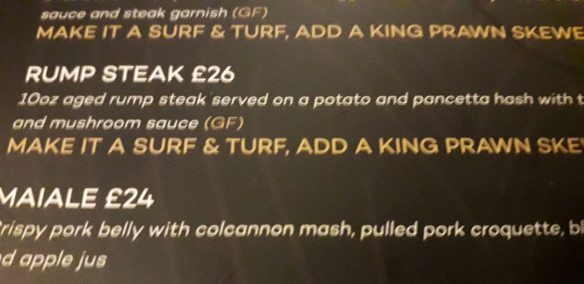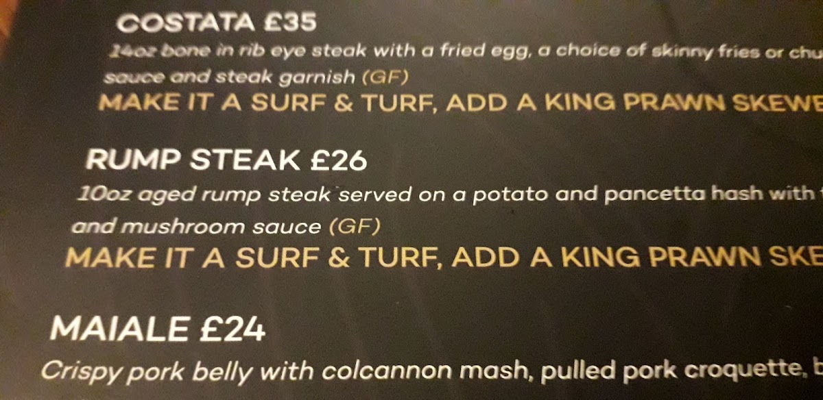 14oz rib eye steak with either skinny fries or chunky chips, fried eggs & grill garnish